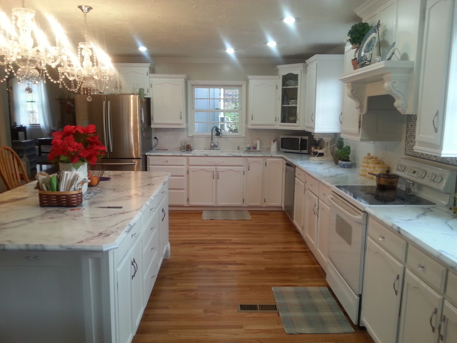 your jar, rinse it thoroughly and I also sterilized it in some boiling water. I then boiled about a quart of water with 8 green tea bags and two flavored black tea for total of 10 -12 bags. When it has started boiling I add 1 cup sugar and stir it in, then let it sit and steep for 15 min to an hour. I steeped for an hour. Then remove your bags and pour into your big glass jar that is at least 1 gallon. then pour in your remaining 3 quarts of cold water to finish cooling your tea. Make sure it is cool before next step. Pour in your scoby from your quart jar with about 1.5 to 2 cups of the tea it was grown in.